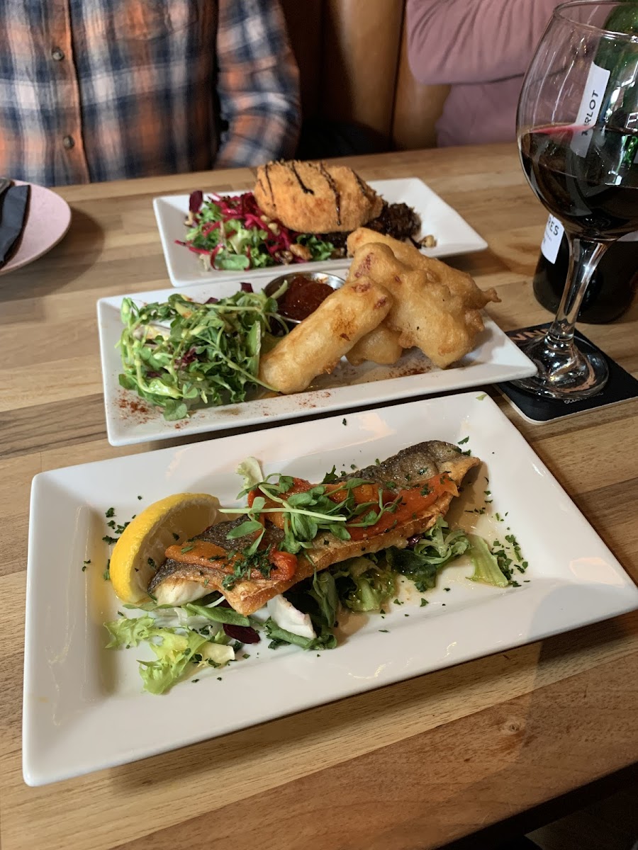 Food was very good. I had sea bass which was a rather small piece. The individual portion of chips were rather too large. Waiter was very nice indeed and very helpful however service could have been faster. The restaurant I appreciate was very busy. There were 3adults and 3children in our party.