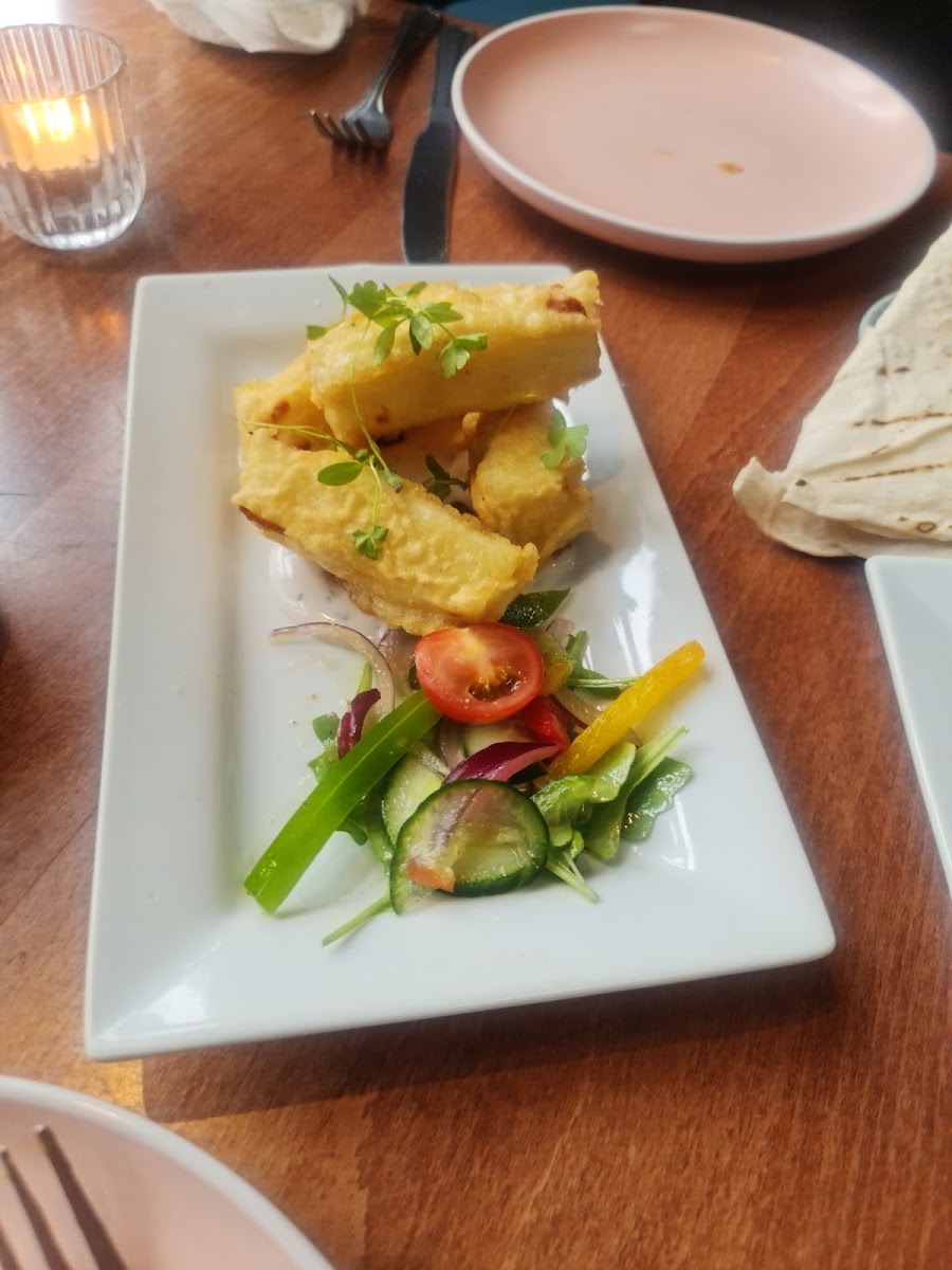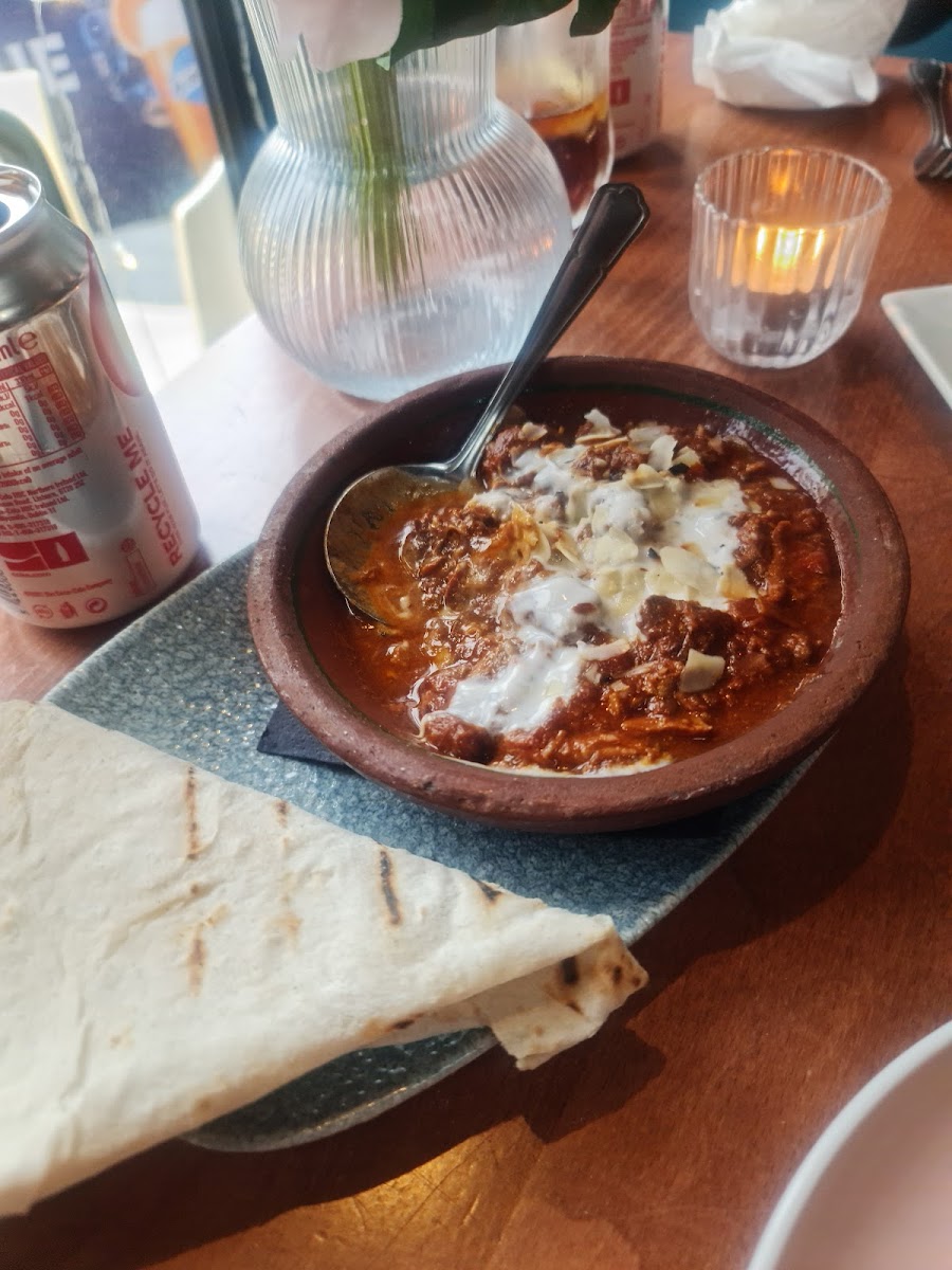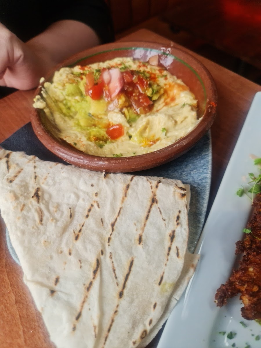 Nipped in here for some lunch for my wifes birthday after having a look at what places were open locally and we were very happy we did. I love anywhere that serves smaller plates for sharing as you get to try a bit of everything and there was a good variety for all different pallets. I would say most of the dishes are medetterian meze inspired and a few of their own takes with certain dishes but the food really was lovely. The standouts for me were the Monkfish Cheek Scampi , Chicken Shawarama fries and the Muhammara , although I do wish it was served with a proper big flatbread instead of large grilled tortilla wrap. Really good drinks menu aswell and they even have Blue Moon on draught which is fantastic and might be the only place in the south of Glasgow you can actually get it. The decor is nice inside and the girl that served us was cheery, polite and attentive considering she was just on herself at lunch. Will absolutely be back for some more dishes soon.