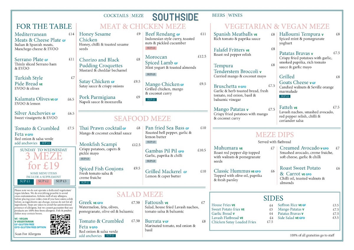 Southside Bar Restaurant Menu